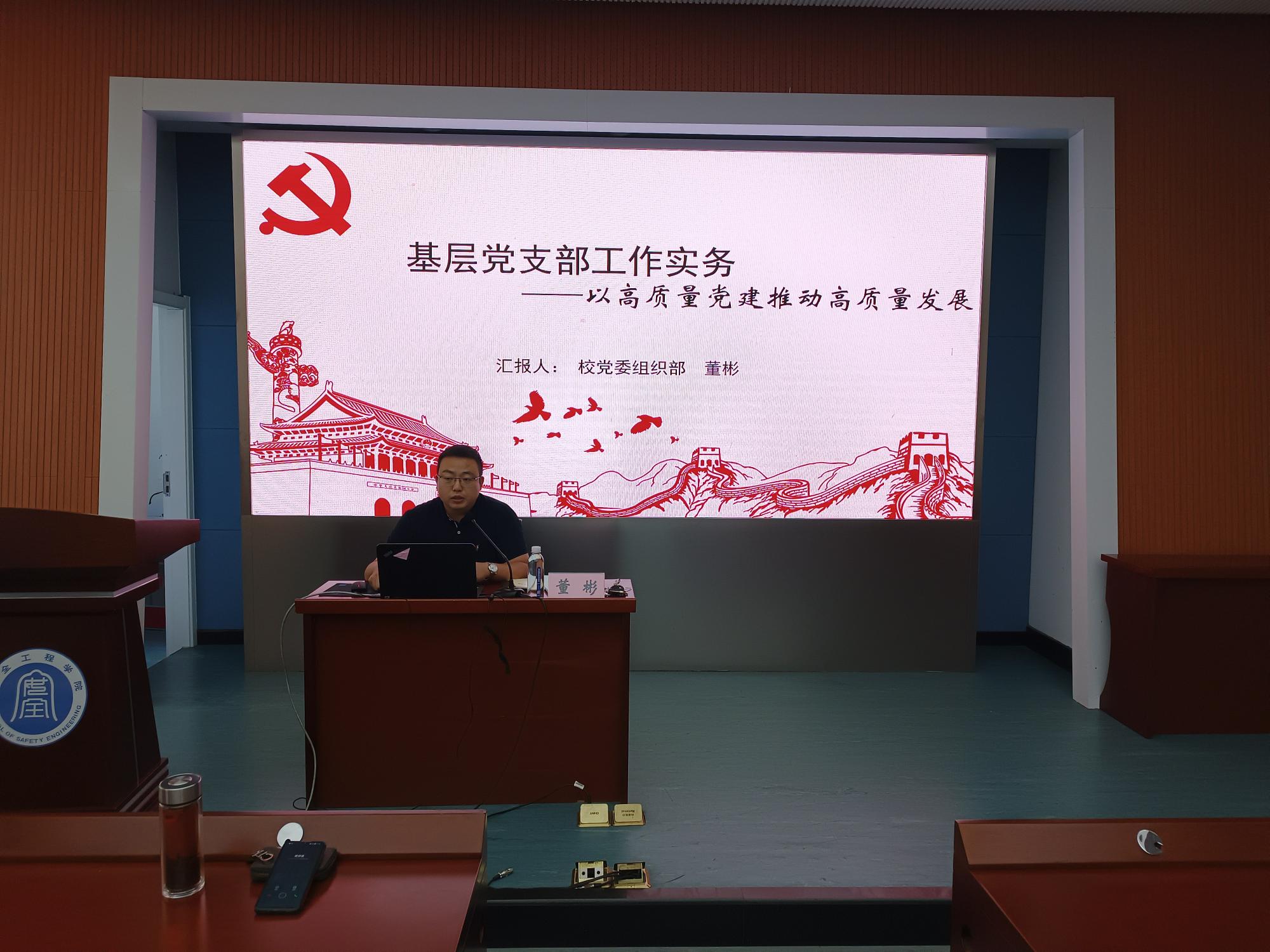 董彬老师以《基层党支部工作实务——以高质量党建推动高质量发展》为主题,围绕三个方面问题展开。一是提高认识,切实增强高校基层党支部建设的责任感和紧迫感;二是深刻领会,准确把握高校基层党支部标准建设的主要内涵;三是从严从实,不断推进党建工作与业务工作融合互促。董彬老师结合具体案例,详细讲解了我校发展党员工作的制度和具体工作流程,强调支部要做到“两个全覆盖”,同时要做到标准化建设到位,与业务工作融合到位。