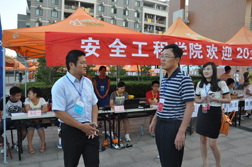 迎新服务人员在三食堂广场搭起了帐篷,设置了新生报到站点,同时,在东门、二食堂车站等地点分配了值班人员迎接新生的到来。迎新期间,校党委副书记曹德欣等校领导莅临现场视察工作。