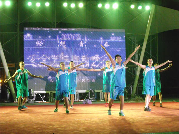 9月21日晚,安全学院主办的“畅想青春”迎新晚会在镜湖广场成功举办,院执行院长周福宝、党委副书记钱雄、学生工作办公室主任孙留涛老师以及各年级辅导员老师带领安全2012级全体新生到场观看。