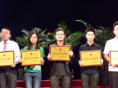荣获五四红旗团委称号,学生工作办公室主任孙留涛(中)领奖