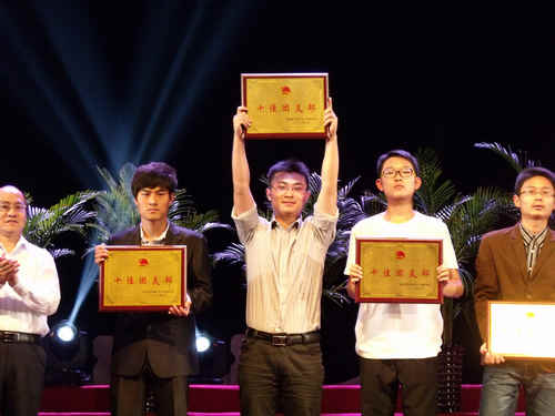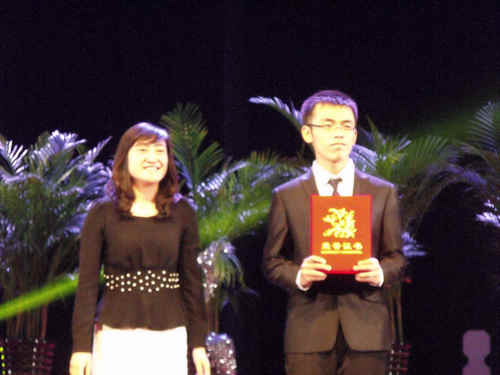 安全09-4班团支部荣获校级十佳团支部,团支部书记涂庆毅同学领奖(中)