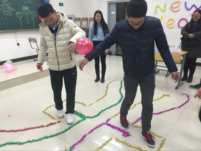晚上7点,游艺宫正式开始。同学们用五彩的气球,彩带将教室装饰出新年的气息。“魔幻之旅”游艺宫中的“水上浮硬币”难倒了很多学生,“扭转乾坤”考验了同学们的记忆力,“花样青春”中的“护送气球”考验了身体协调能力,团委游艺宫中的“筷子投酒瓶”锻炼了同学们的集中力,还有“抛绣球”、“飞环套圈”“弹球入筐”等等有趣的游戏,吸引了许多同学们关注。