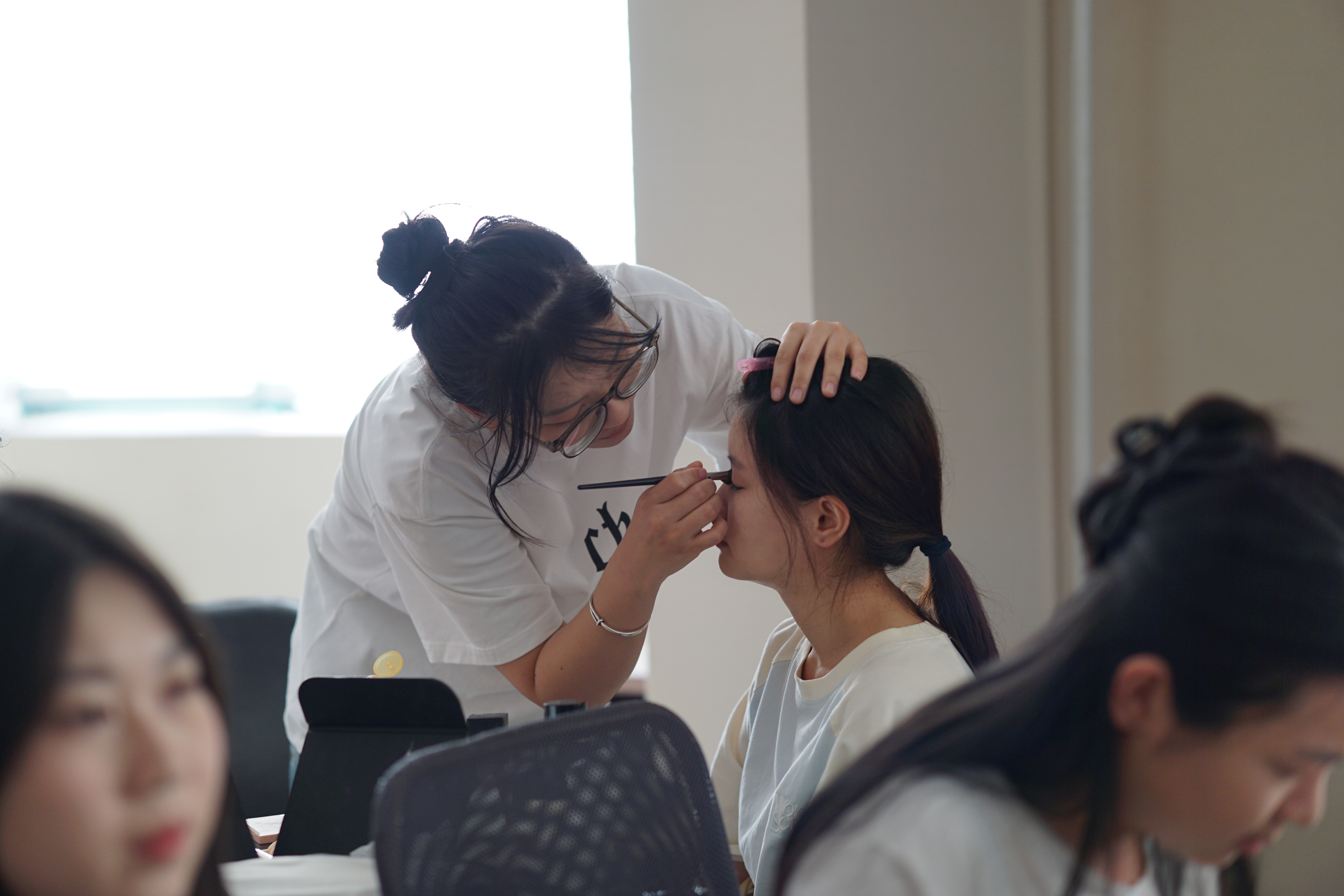 活动筹备阶段,主办方邀请专业化妆老师进行化妆教学。活动期间,化妆老师与模特进行现场教学,其余同学跟妆练习。随后,大家相互分享自身积累的化妆知识与独特经验,共同解答在化妆过程中遇到的种种疑惑,形成浓厚的美妆学习氛围,助力同学们提升化妆技能与审美水平。