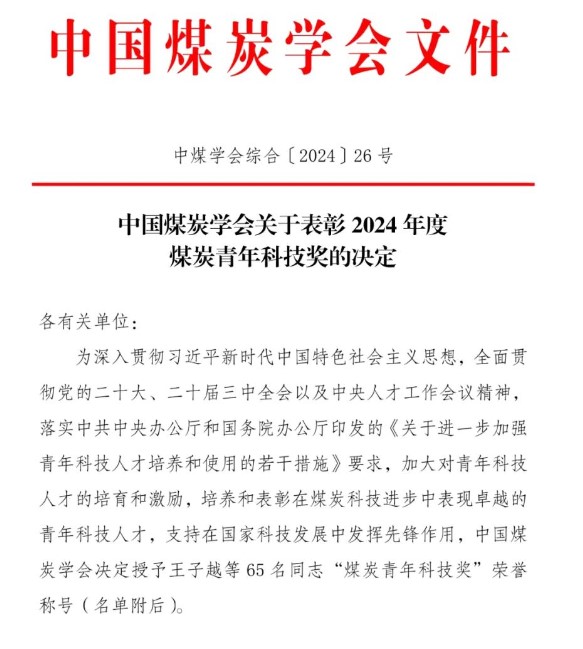 据悉,中国煤炭学会从1994年开始设立煤炭青年科技奖,旨在表彰在煤炭科技领域取得杰出成就的青年才俊,鼓励煤炭战线广大青年科技人员奋发进取,促进科技人才健康成长。